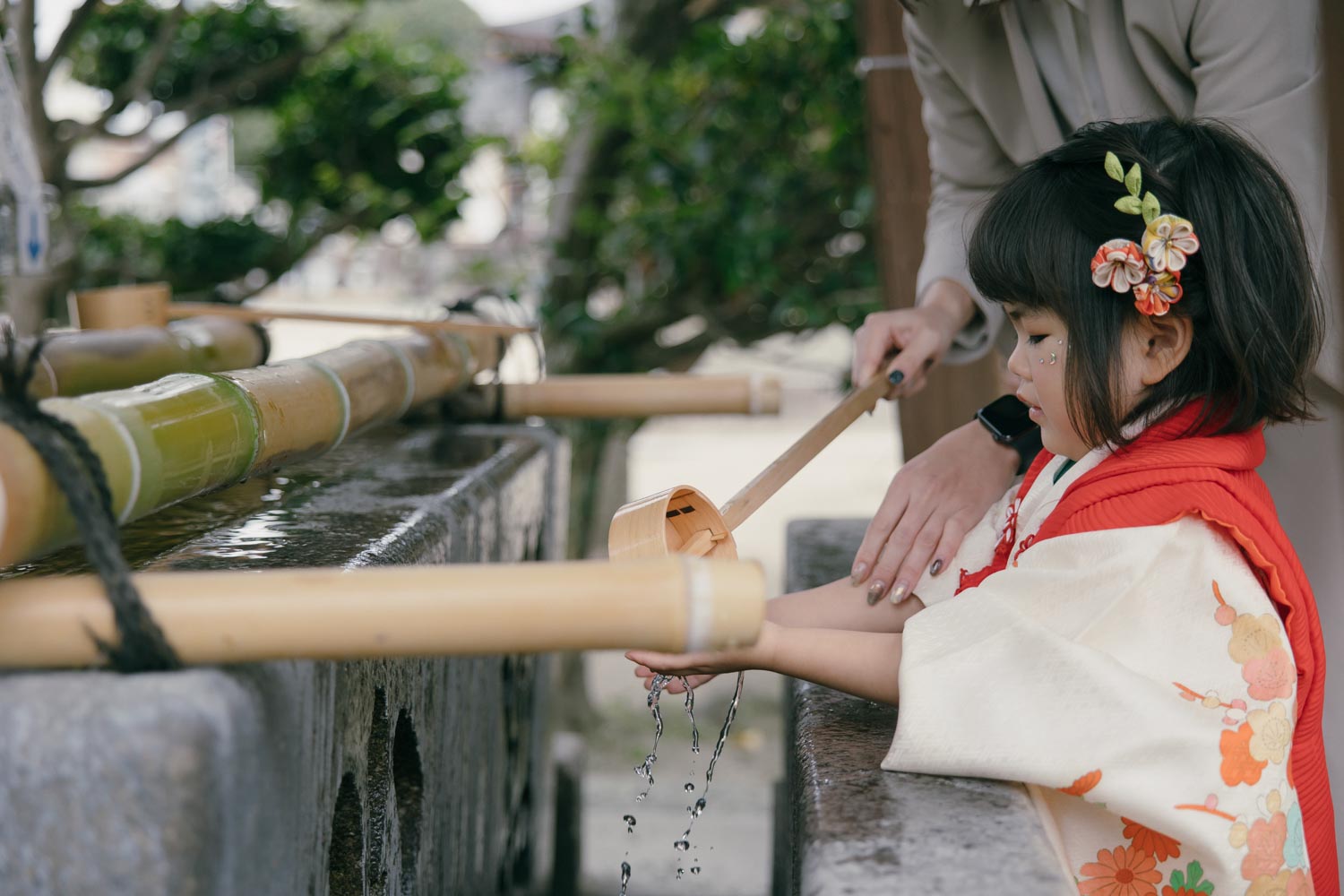 ご自宅でお支度をしてからお近くの神社へ向かい、