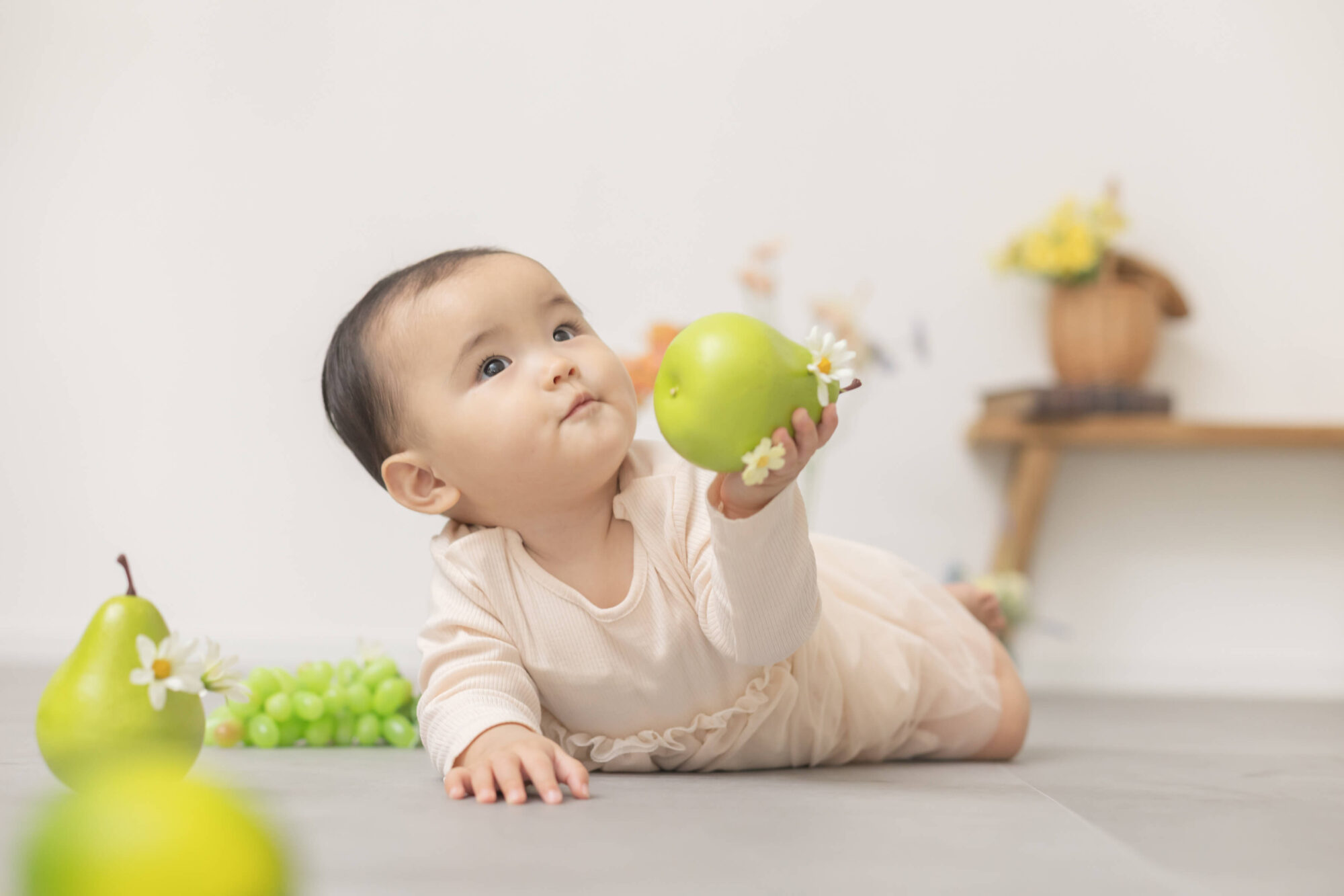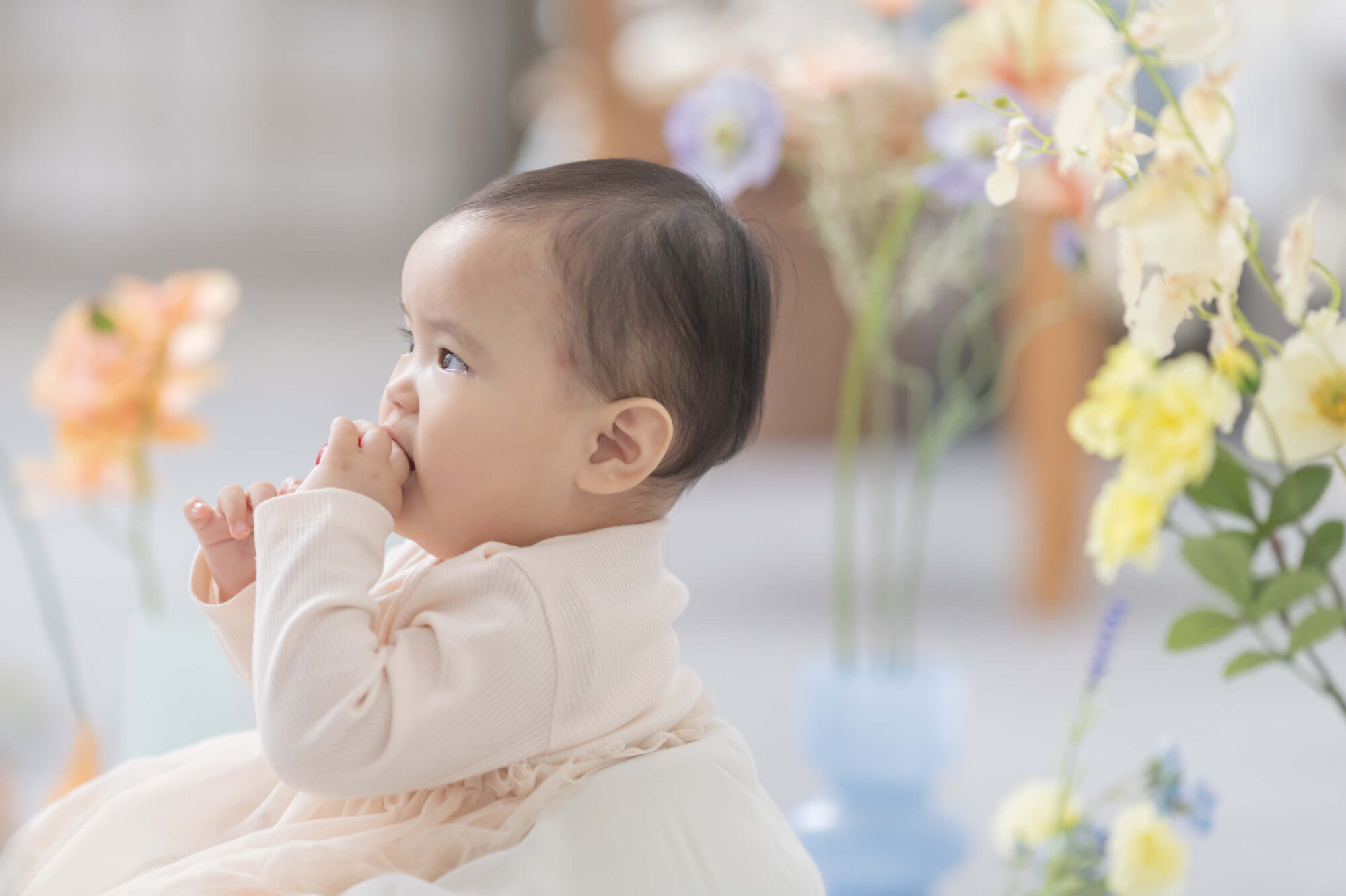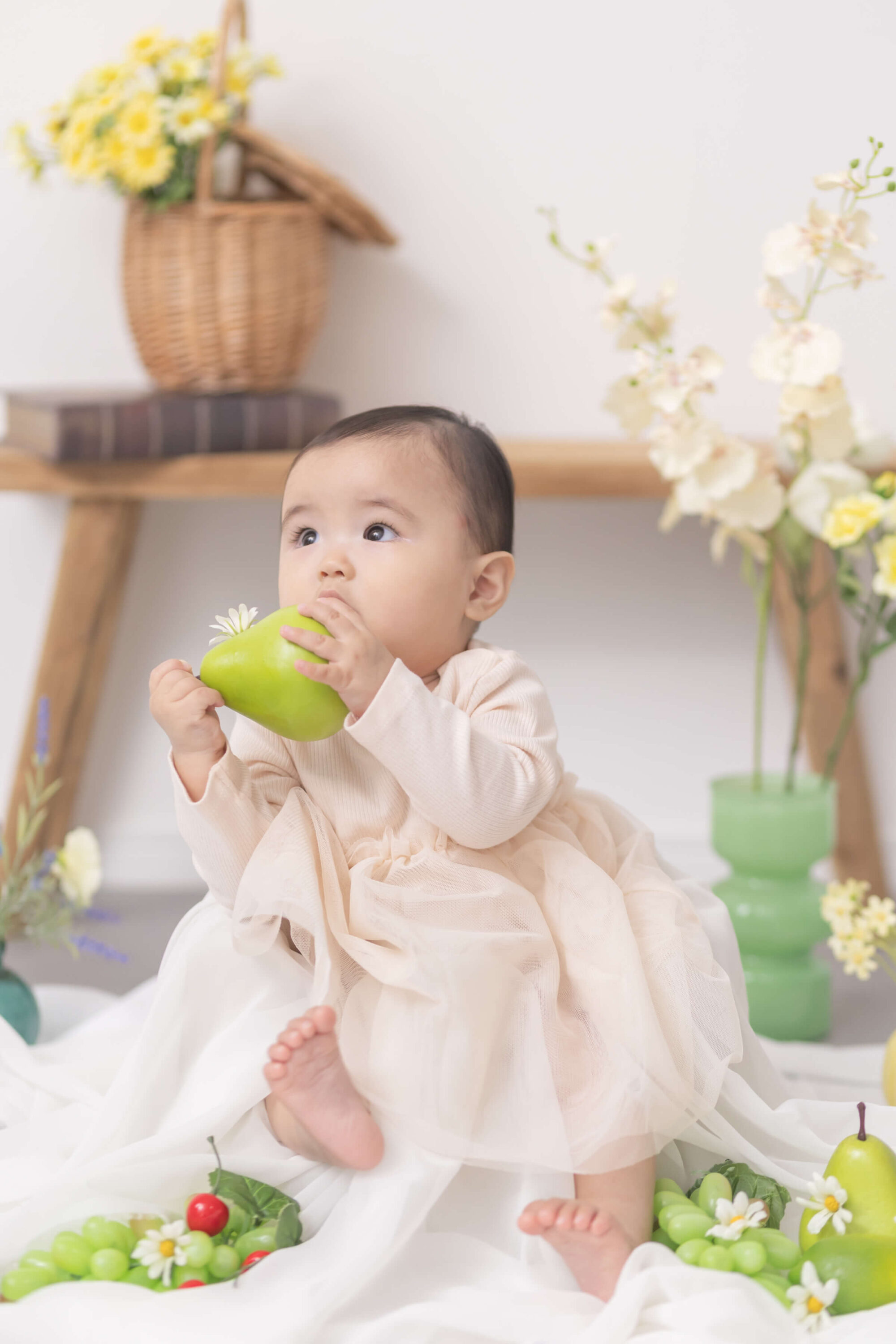 お客さまの希望を聞きながらアニバーサリーにふさわしいシーンをご提案するメゾンスタジオ北神戸。たくさんの撮影シーンから、今回はデコレーションいっぱいのハーフバースデーフォトをお届けします。時間内なら何度でもお洋服のお着替えOK!カラフルで可愛いスタジオの装飾にもぜひご注目ください!