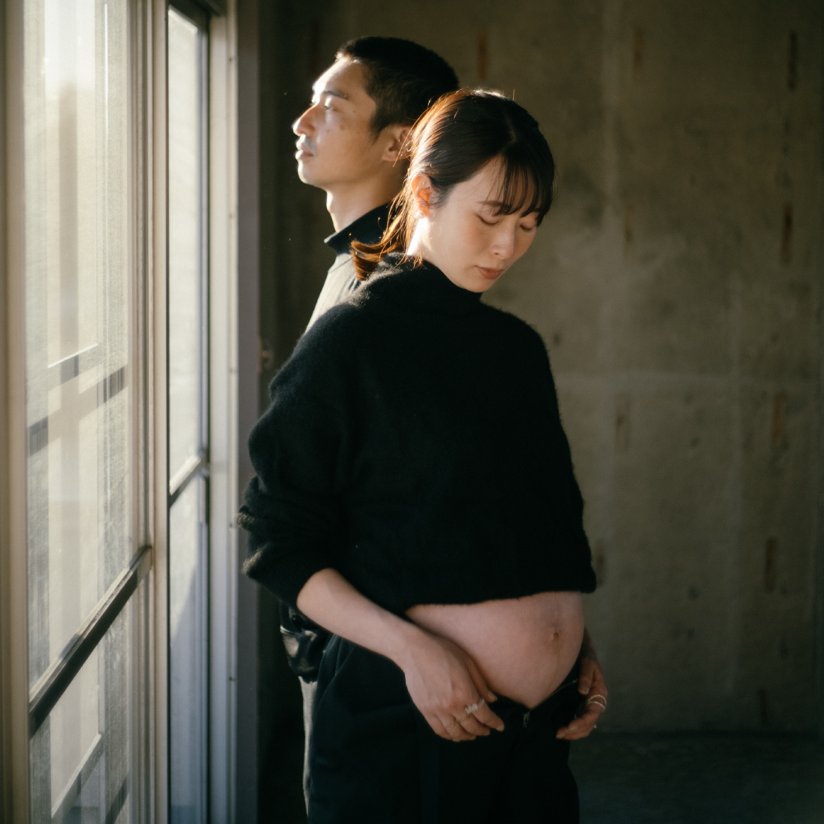 ふたりでおなかを出し合い、パパ&ママ宣言!