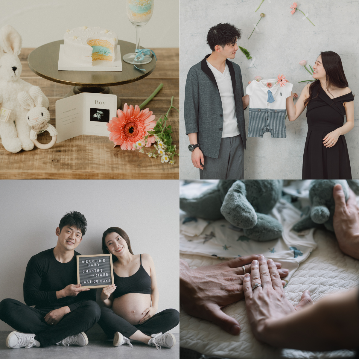 ベビーシューズ、ベビーウェア、読み聞かせたい絵本など……。生まれてくる赤ちゃんのために準備したアイテムは、どれも愛情たっぷり。マタニティフォトを撮るころには赤ちゃんの性別が分かっていたり、お名前を考えはじめていたり……。撮影中のふたりの会話も尽きることがなく、写真を見返せば思い出話に花が咲きますよ。
